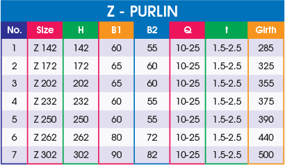 MEI Z - Section are secondary structural members used to gab between frames. These profiles are made from preheat dipped galvanized steel, G275 coating based on BSEN 10147 with minimum guaranteed yield strength 350 N/mm². The metal thickness varies from 1.5mm to 2.5 mm. Sleeves are used to join purlin above frames, where as 6 to 8 mm cleats and 16mm bolts are usually used to connect this profile to building frames.